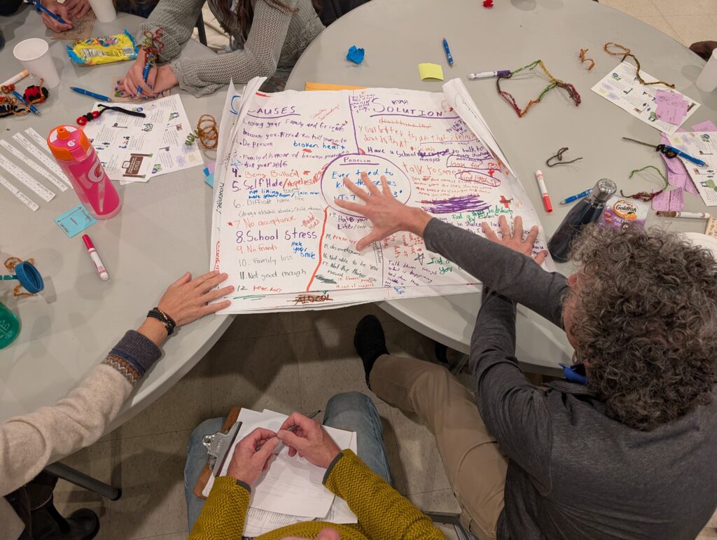 That morning, the teams gathered for their 3rd retreat of the year — a chance to pause, reflect, and prepare. Youth reflected on their growth as facilitators, named their strengths, and identified areas for themselves to grow in where they felt less sure. Together, they practiced through a facilitation role play activity, supporting one another as they got ready for the event ahead.
